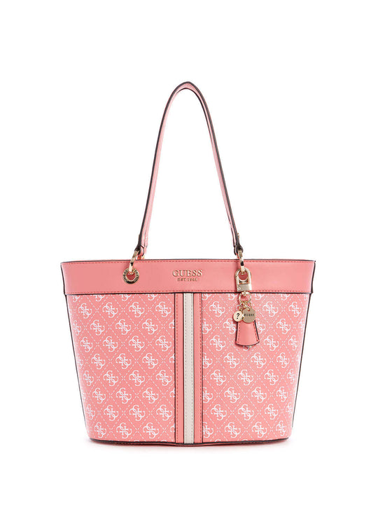 guess Logo Noelle Small Pink Womens Elite Tote front view guess Logo Noelle Small Pink Womens Elite Tote side view guess Logo Noelle Small Pink Womens Elite Tote inside view guess Logo Noelle Small Pink Womens Elite Tote back view