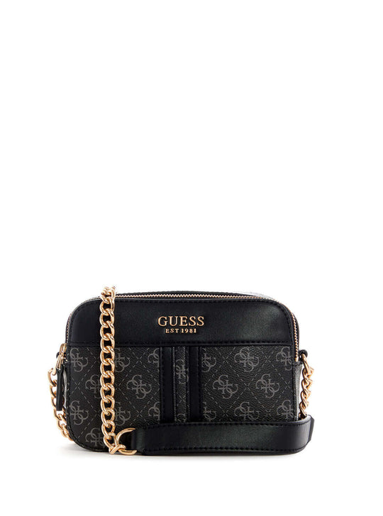 GUESS Noelle Logo Camera Black Womens Crossbody front view GUESS Noelle Logo Camera Black Womens Crossbody side view GUESS Noelle Logo Camera Black Womens Crossbody inside view GUESS Noelle Logo Camera Black Womens Crossbody back view
