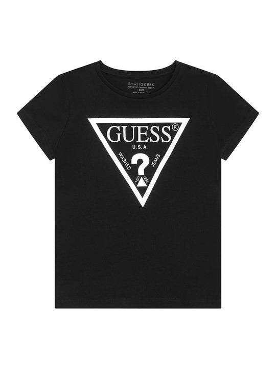 guess Sequin Black Kids T-Shirt (2-7) front view guess Sequin Black Kids T-Shirt (2-7) back view