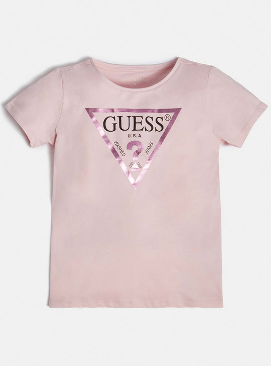 GUESS Big Girls Pink Organic Triangle Logo T-Shirt (7-16) J73I56K8HM0 Front View GUESS Big Girls Pink Organic Triangle Logo T-Shirt (7-16) J73I56K8HM0 Back View