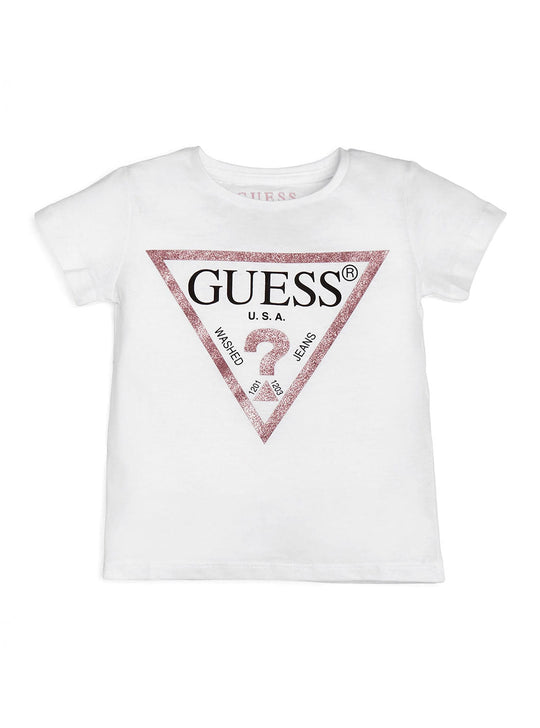 GUESS Sequin White Little Girl T-Shirt (2-7) front view GUESS Sequin White Little Girl T-Shirt (2-7) back view